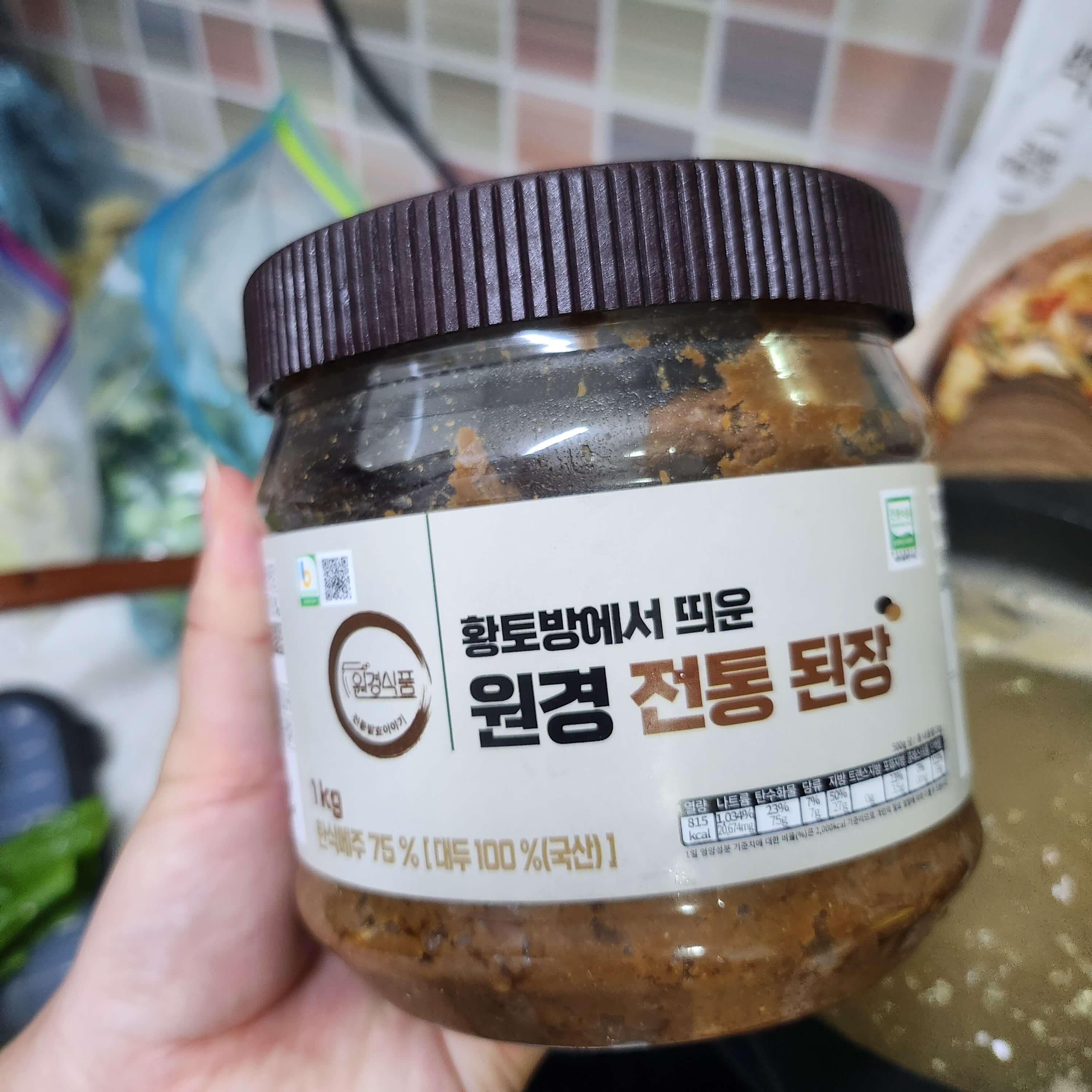 원경 전통된장은 파머스마켓에서 구매했는데 싱겁고 텁텁한 맛이 나서 순창 재래식된장을 함께 넣어 사용하고 있어요.